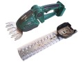 Nôžky disponujú otočnou hlavou o 90° , čo uľahčuje úpravu uhlu strihu podľa potreby. Dvojica výmenných nadstavcov – čepeľ na kríky (200 mm) a čepeľ na trávu (100 mm) – umožňuje univerzálne použitie pri všetkých bežných záhradných prácach. Konštrukcia tela z odolného ABS plastu a vnútorné kovové časti zaručujú dlhú životnosť a stabilitu aj pri intenzívnom používaní.