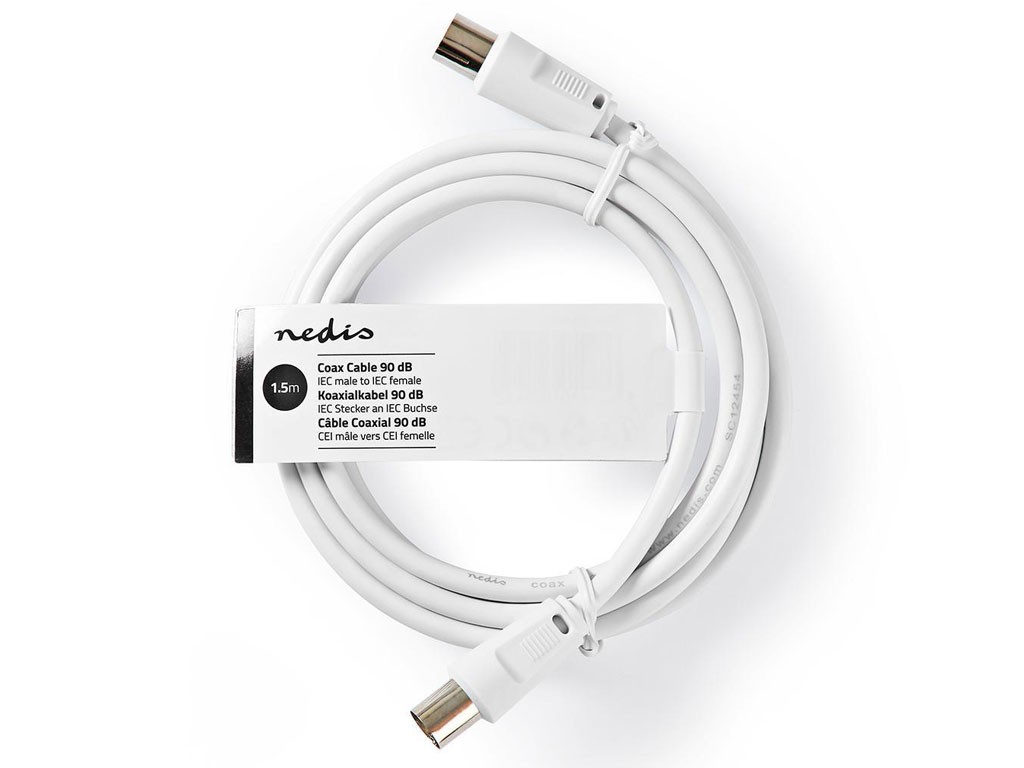 Anténny koaxiálny kábel 1.5m biely CCSGT40000WT15Tento koaxiálny kábel je určený na pripojenie televízora alebo iného zariadenia k nástennému koaxiálnemu zásuvke. Kábel je vyrobený z PVC a je dvakrát tienený pre lepšiu ochranu signálu.