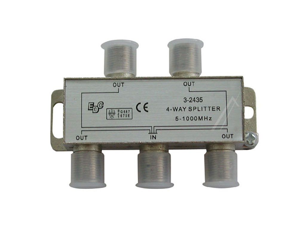 Anténny rozbočovač TV EDC 03-2435 s 4 výstupy, frekvencia 5-1000MHz, F konektory.