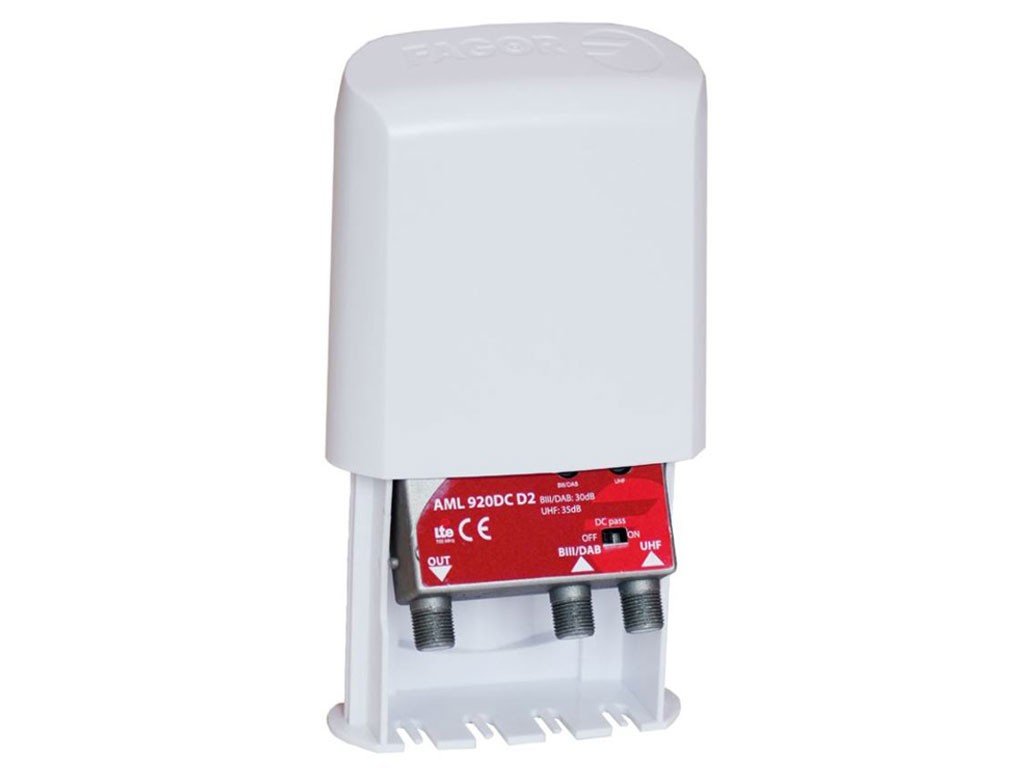 Anténny zosilňovač AML-910 je šírokopásmový domáci zosilňovač s jedným vstupom, vhodný na montáž na stožiar v vonkajšom prostredí. Tento model ponúka zosilnenie 35 dB a pokrýva frekvenčné pásmo od 470 do 694 MHz. Zosilňovač je vybavený zabudovaným filtrom LTE700 a samostatnou reguláciou výstupnej úrovne pre jednotlivé vstupy. Napájanie zosilňovača +24V sa realizuje diaľkovo po koaxiálnom kábli. Odporúčané originálne napájacie zdroje sú FA-242 alebo AL-100, ktoré obsahujú napájací výhybku a šírokopásmový rozbočovač.