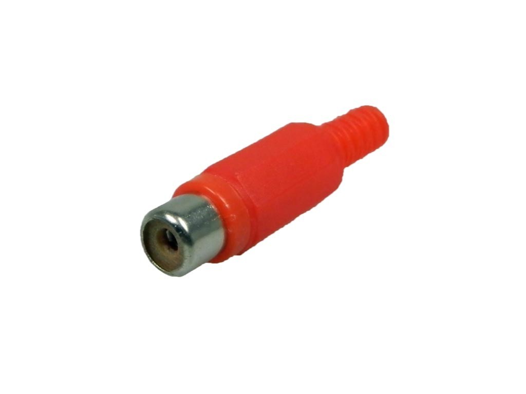 Plastový konektor CINCH slúži k audio a video pripojeniu. Tento model je navrhnutý ako zásuvka s priemerným prevedením a vývodkou. Je vhodný pre mechanickú montáž na kábel a elektrickú montáž pomocou pájenia. Farba telesa je červená, čo uľahčuje identifikáciu.