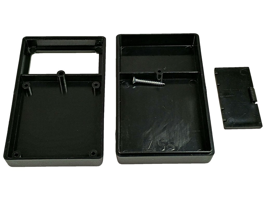 Jedná sa o dvojdielnu krabičku, ktorá ponúka priestor pre batériu a je spojená jedným vrutom. Táto krabička je ideálna pre rôzne aplikácie a poskytuje spoľahlivé riešenie pre uchovávanie elektronických komponentov.