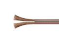 Priehľadná dvojlinka z bezkyslíkaté OFC medi (transparentný vodič) s prierezom 2 × 1,00 mm². Tento kábel je ideálny pre prenos audio signálu a prepojenie reproduktorov.