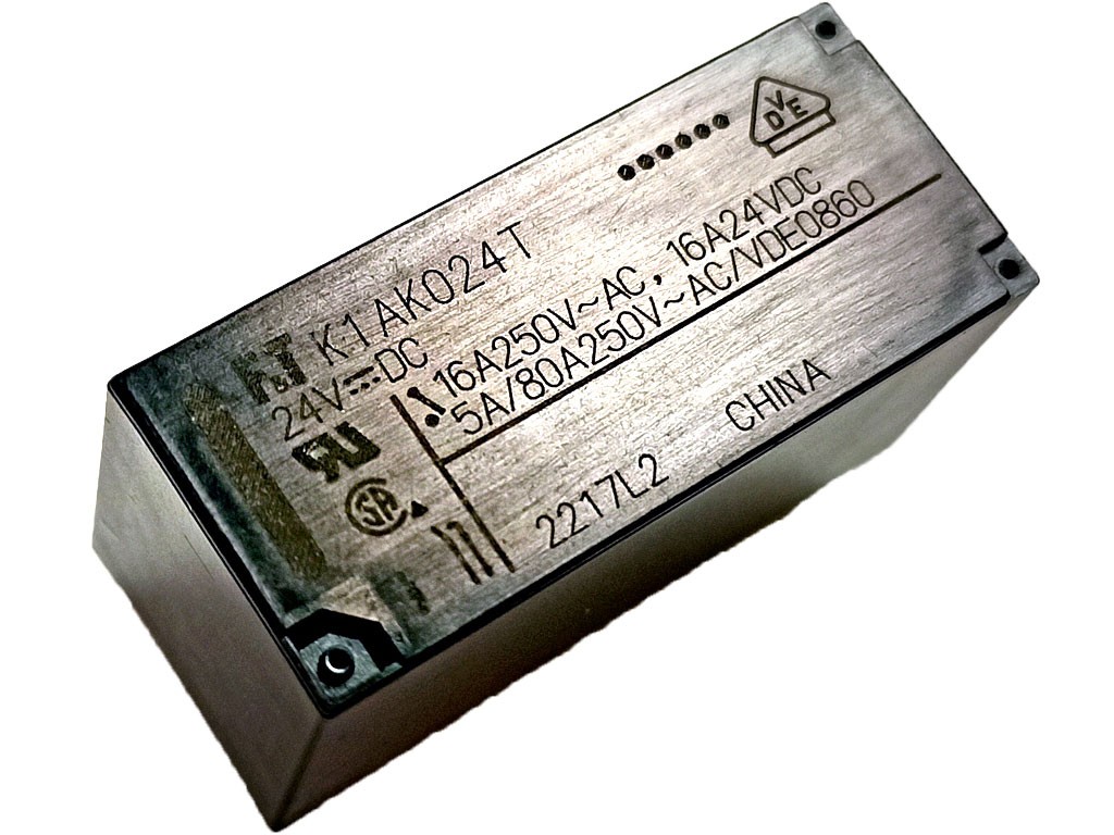 U cievky: 24VDC, 16A/250V AC, 16A/150V DC, 1x spínací kontakt.