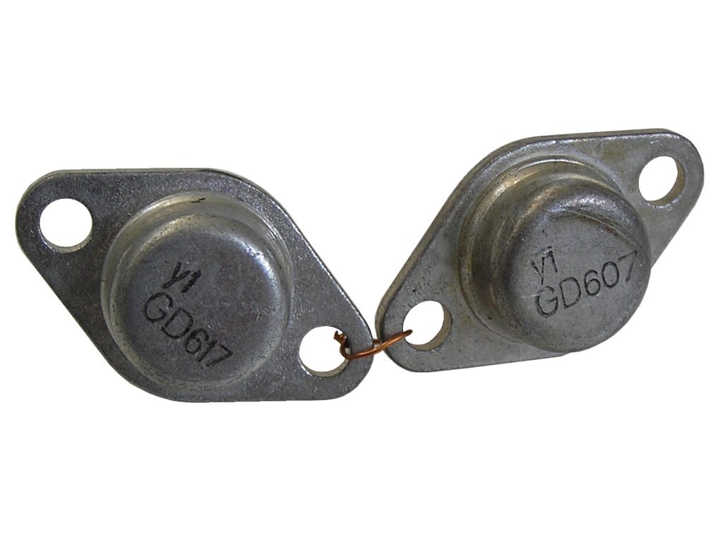GD607 a GD617 sú komplementárne dvojice germániových tranzistorov od výrobcov Tesla a RFT. Tieto tranzistory sú starostlivo párované s rozptylom ±30%, čo zaisťuje ich vysokú kvalitu a spoľahlivosť.