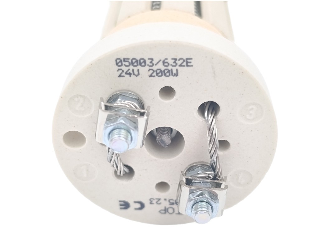 Keramické vykurovacie teleso 200W 24V, 3 články, priemer 48 mmZákazková výroba!Keramické vykurovacie teleso je určené na nepriamy ohrev vody. Vyznačuje sa nasledujúcimi parametrami: