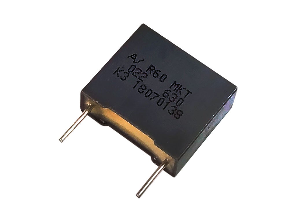 Kondenzátor 22nF z metalizovaných polyesterových fólií (MKT) je ideálny pre odrušovacie aplikácie. Tento kondenzátor je dostupný v niekoľkých hodnotách, ktoré sa dajú zapísať ako 22nF, 22k, M022, alebo 0.022uF.