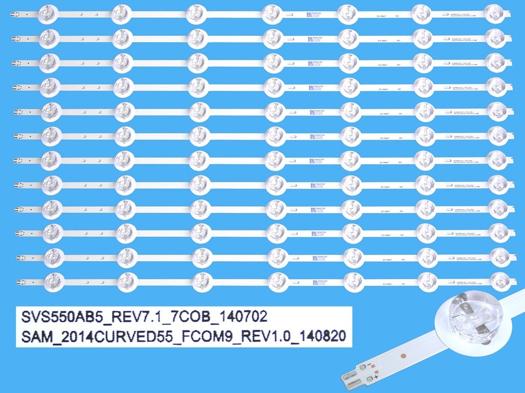 LED podsvit 594mm sada pre Samsung a Panasonic - 12 kusovLED podsvit pre LCD panel 55"LED podsvit určený pre LCD TV a DLED backlight s prúdom 400mA, kompatibilný s modelmi Samsung a Panasonic. Sada obsahuje 12 identických kusov modelu SVS550AB5 REV7.1 7COB. Pri inštalácii je nutné zabezpečiť precíznu montáž a dôkladné odmastenie plechovej vany, aby sa predišlo odlepeniu podsvitu počas prevádzky, čo by mohlo viesť k jeho zničeniu.