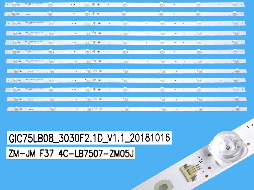 LED podsvit pre LCD televízory s dĺžkou 850mm a prúdom 180mA, určený pre panely Thomson a TCL. Sada obsahuje 12 identických LED pásků, ktoré sú plne zameniťelné s originálnymi diely.