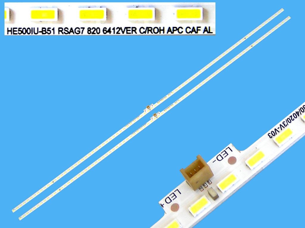 LED podsvit EDGE 545mm pre Hisense HE500IU-B51LED podsvit pre LCD panel 55" HisenseLED podsvit určený pre LCD TV s technológiou LED-EDGE backlight. Sada obsahuje dva kusy podsvitu o dĺžke 545 mm, ktoré sú kompatibilné s panelom Hisense HE500IU-B51. Každý pás obsahuje 80 LED diód, celkový počet LED v sade je 160.