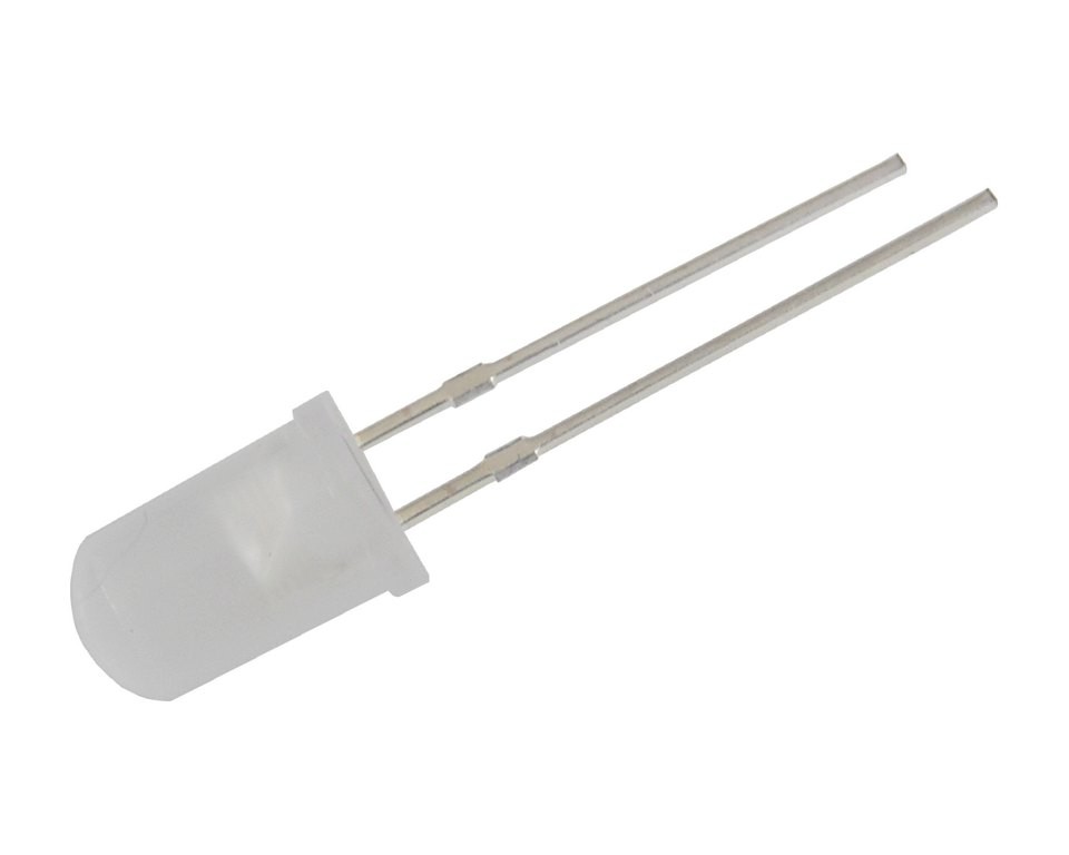 Modrá 5mm LED dióda s difúznym puzdrom a uhlom 110-120°.