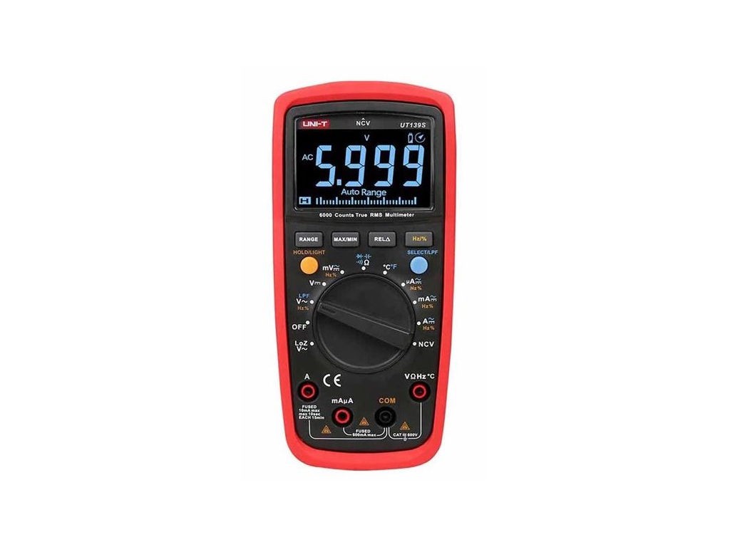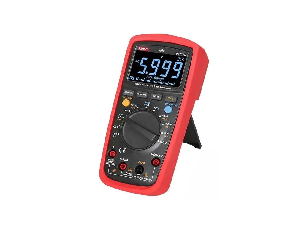 Multimeter UNI-T UT139S Digitálny True RMS CAT III 600VMultimeter UNI-T UT139S je profesionálny merací prístroj s klasifikáciou True RMS a ochranou CAT III 600V, navrhnutý pre elektrikárov a technikov. Tento model ponúka široké spektrum funkcií pre meranie distribučných sietí v budovách. Multimeter spĺňa certifikáciu cETLus a obsahuje radu pokročilých funkcií, ako sú: