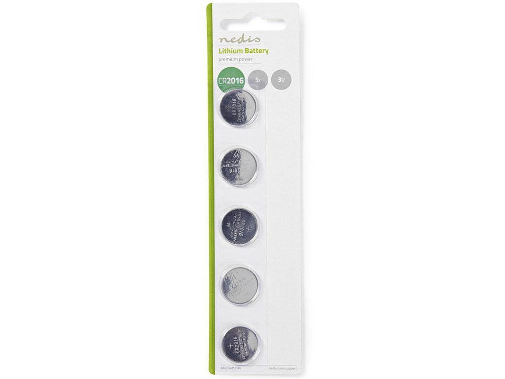 Nedis CR2016 Lítiová Batéria 3V - Balenie 5ksTieto lítiové gombíkové batérie CR2016 s dlhou životnosťou sú ideálne pre široké spektrum elektronických zariadení. Poskytujú spoľahlivý napájací zdroj pre zariadenia ako sú diaľkové ovládače, hodinky a ďalšie.