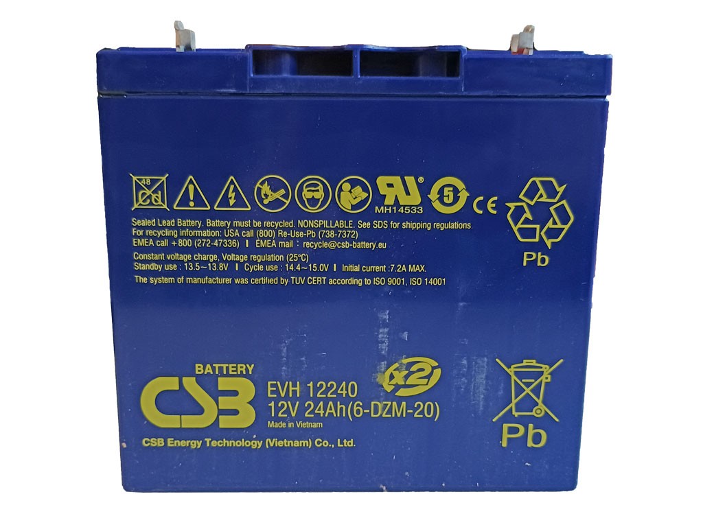 Akumulátor EVH12240 je záložný, bezúdržbový, uzavretý akumulátor od CSB Battery, navrhnutý pre cyklický prevádzku. Vďaka technológii AGM je akumulátor ľahký a vhodný pre rôzne nabíjačky. Tento model je ideálny pre elektrické vozidlá, bicykle, golfové a nákupné vozíky.