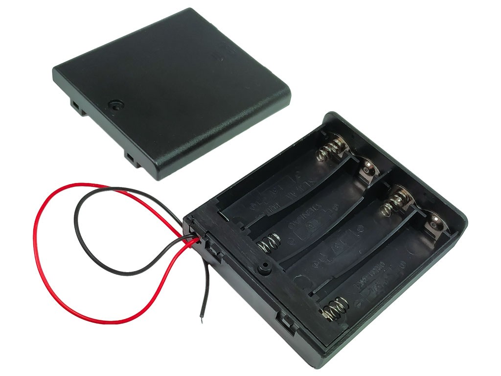 Praktické puzdro na batérie pre 4 kusy AA vedľa seba. Vyrobené z kvalitného plastu v čiernej farbe, toto puzdro je ideálne pre rôzne projekty, ktoré vyžadujú napájanie z batérií. Vybavené vypínačom pre jednoduché zapínanie a vypínanie napájania.