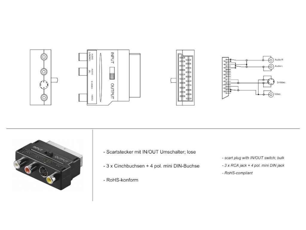 Redukcia SCART na CINCH a S-VHS s prepínačom: