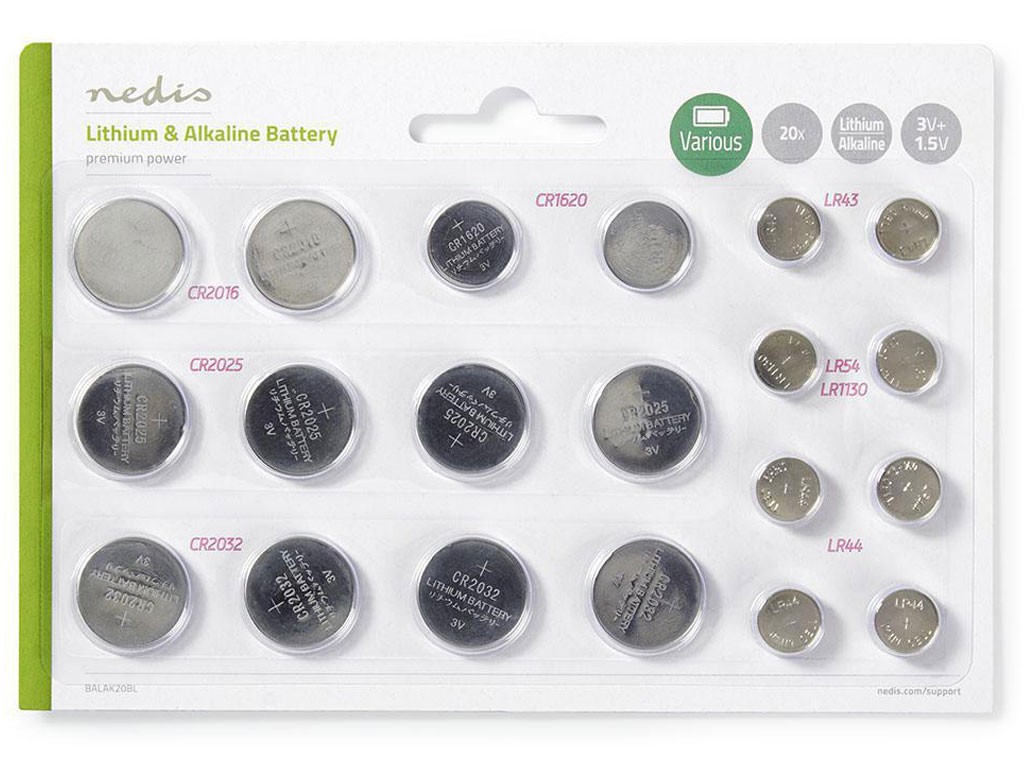 Sada gombíkových batérií Nedis 2xCR2016, 4xCR2032, 4xCR2025, 2xCR1620, 2xLR43, 2xLR54, 4xLR44