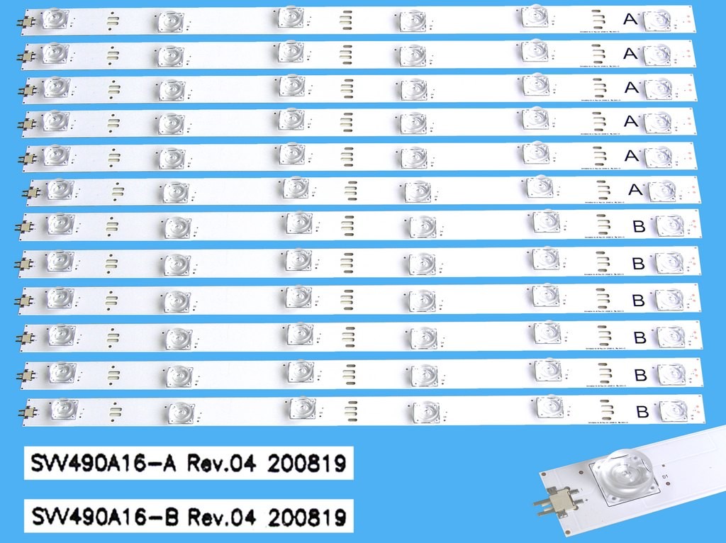 Sada LED podsvietenia 468mm pre TV Grundig - 12 pásikovLED podsvietenie pre LCD panel 49" GrundigLED podsvietenie pre LCD TV / D-LED Backlight 360mA. Sada obsahuje 12 kusov podsvietenia rozdelených na časť A a časť B. Všetky časti majú shodnú dĺžku 468mm.