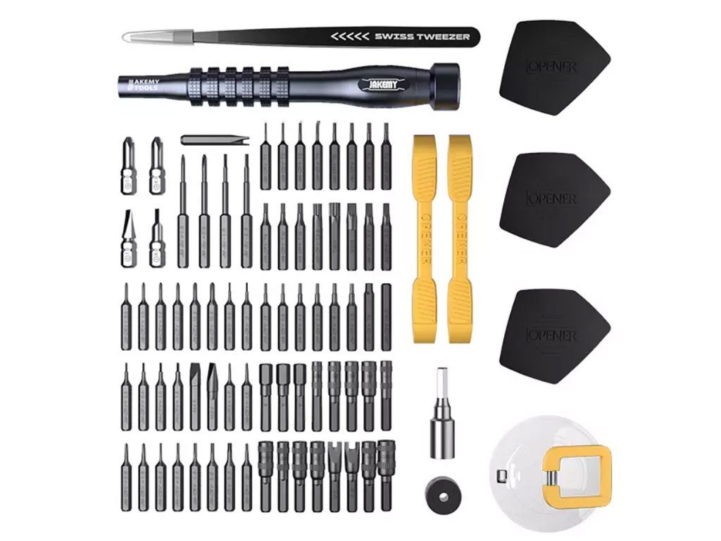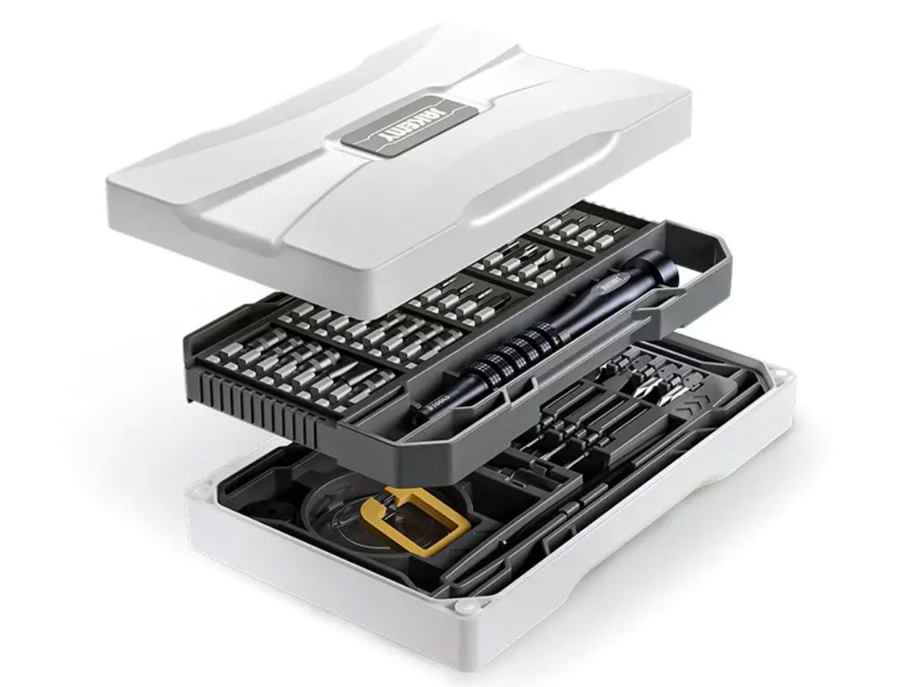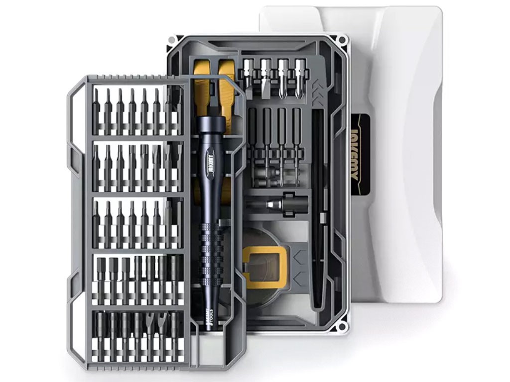 Sada náradia Jakemy JM-8187 obsahuje širokú škálu bitov, nadstavcov a nástrojov, ktoré sú ideálne pre domáce opravy. V tejto sade nájdete ako štandardné bity H6.3, tak mikrobity H4, ktoré je možné kombinovať pomocou redukcie H6.3 na H4. Vďaka protisklzovej úprave rukoväte a nízkej hmotnosti okolo 37 g je práca s týmto náradím pohodlnejšia a menej namáhavá.