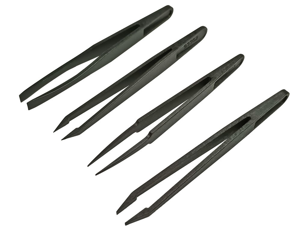 Sada obsahuje 4 kvalitné plastové pinzety s rôznymi hrotmi a širokou rukoväťou.
