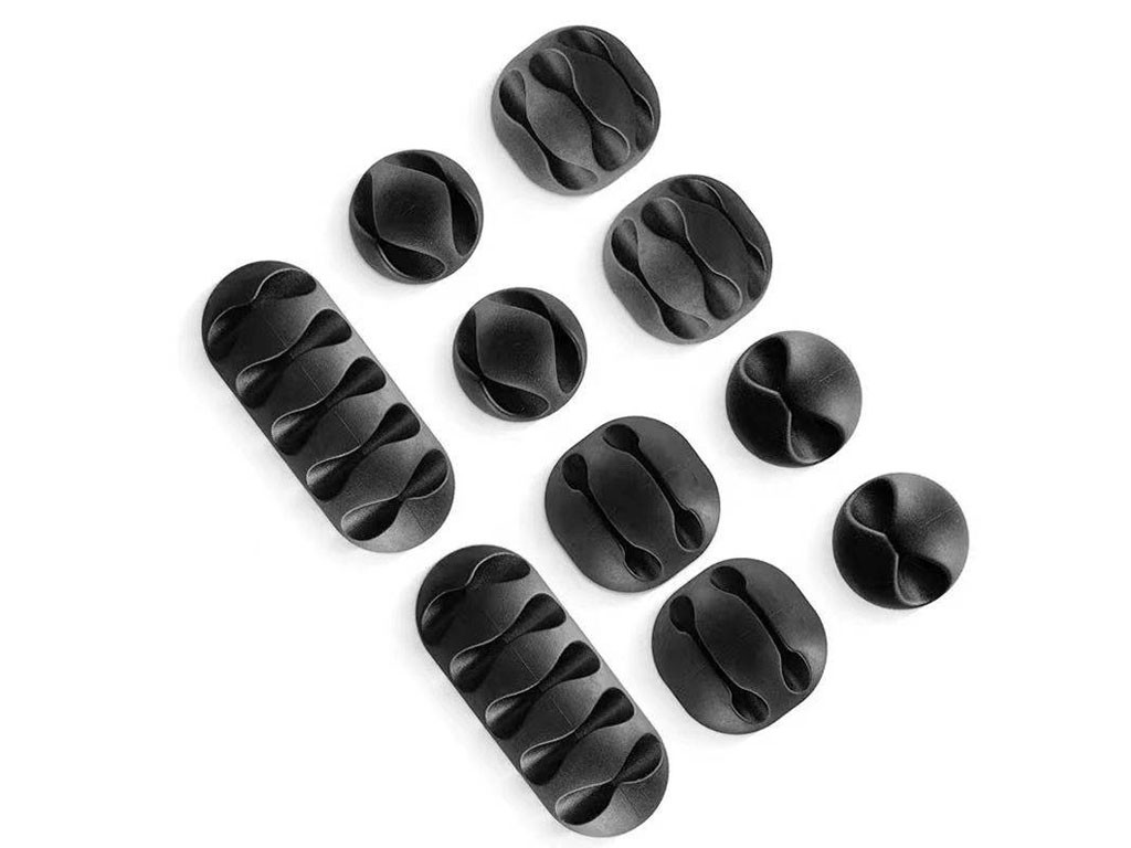 Set klipov pre efektívnu organizáciu káblov, ktorý obsahuje 10 kusov (5 rôznych typov po 2 kusoch). Tieto klipy sú vyrobené z kvalitného plastu a umožňujú jednoduché uchytenie káblov s maximálnym priemerom 9 mm.