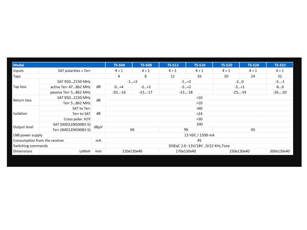 Kvalitný satelitný multiprepínač určený pre pripojenie dvoch družíc a až 12 účastníkov. Tento prepínač zaisťuje vynikajúcu kvalitu signálu aj pri nízkych úrovniach vďaka patentovanému spínaciemu tranzistoru, ktorý reguluje nízku úroveň signálu.