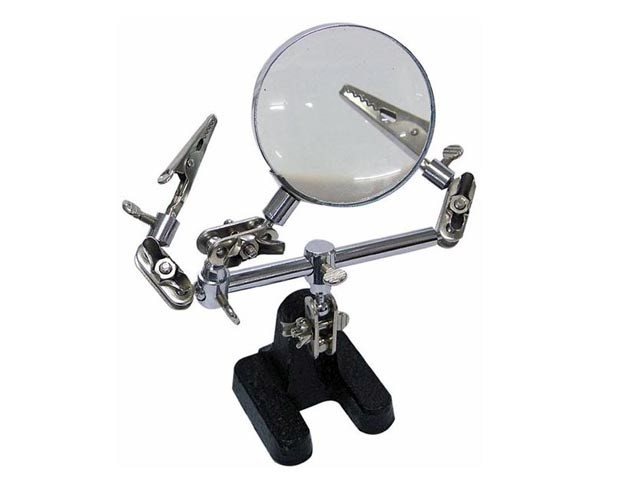 Držiak plošných spojov s lupou o priemere 46 mm je vybavený 8 kĺbmi a 2 svorkami pre uchytenie. Tento výrobok, známy ako tretia ruka, je ideálnym pomocníkom pri pájení a ďalších manuálnych prácach.