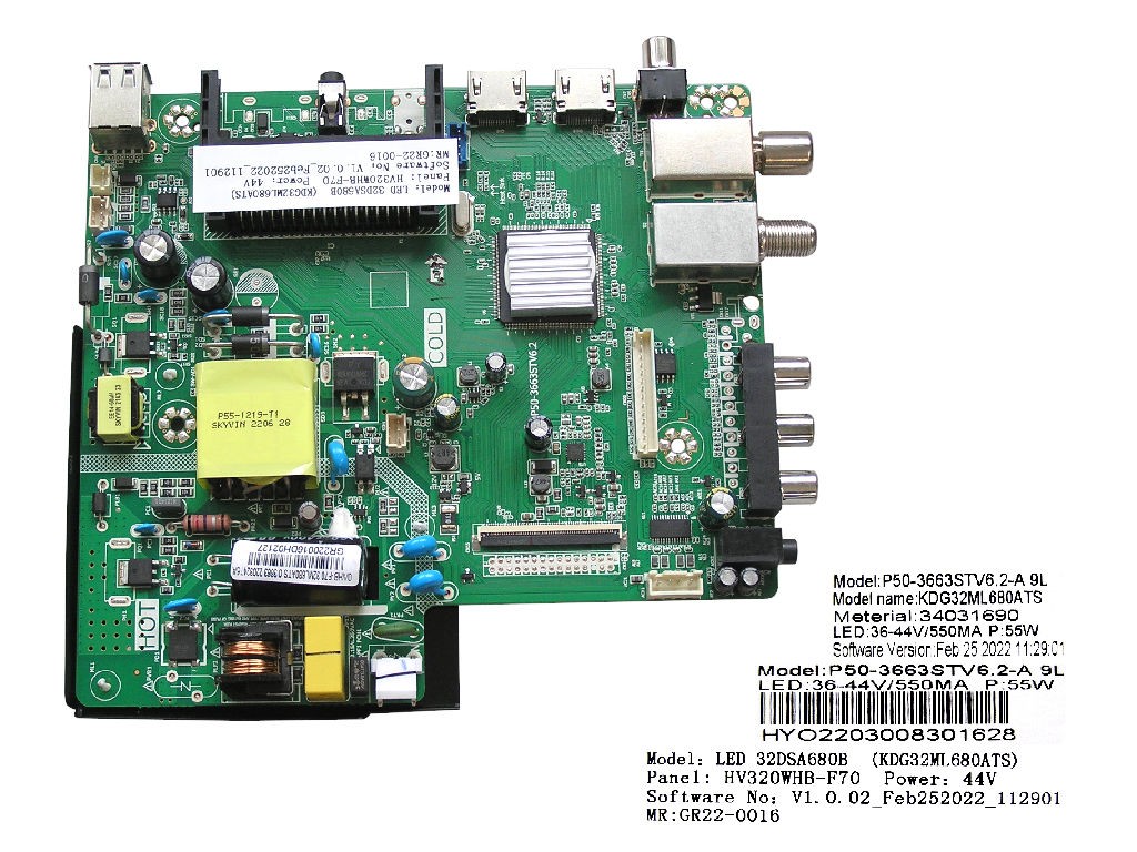 Hlavná doska pre model VOX LED 32DSA680B, typ P50-3663STV6.2, kompatibilná s KDG32ML680ATS.